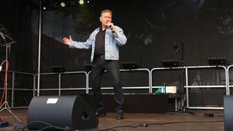 Nachdem die Stadtradler die Bühne räumten, begann nahtlos das frühabendliche Musikprogramm mit Elvis-Imitator und Rock-and-Roll-Sänger Reiner Kowalski. Kowalski bot über zwei Stunden die großen Hits von Elvis Presley dar und sang sich danach durch die Musikgeschichte der 60er und 70er Jahre von Johnny Cash bis deutschem Schlager. Das Publikum freute es, trotz immer wiederkehrenden Regengüssen, und so harten die wetterunempfindlichen Musikfans bis zum Schluss vor der Bühne aus.
