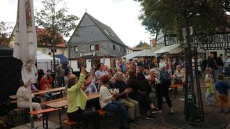 Zum Altstadtfest-Abschluss am Sonntag gab es dann doch noch versöhnliches Spätsommerwetter. Dies lockte noch einmal viele Menschen ins Unterdorf, wo ihnen bis zum großen Finale eine ganze Menge geboten wurde. So etwa im Pfarrhof der St. Martinsgemeinde: Hier fand ab 12 Uhr ein kleiner, aber feiner Kreativmarkt statt. Da gab es Selbstgenähtes von „Hannalinchen“, farbenfrohe Kreationen von „Farbkittel“ oder Schmuck und Kleidung von „moodwear by sina“. Juliane Sturm von „Hannalinchen“ zeigte sich am Ende des Markts recht zufrieden mit dem Zuspruch und hofft, dass im kommenden Jahr noch mehr Besucher den kleinen Markt entdecken und dort auch eine noch größere Auswahl an Selbstgemachtem geboten bekommen.