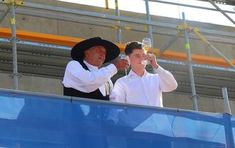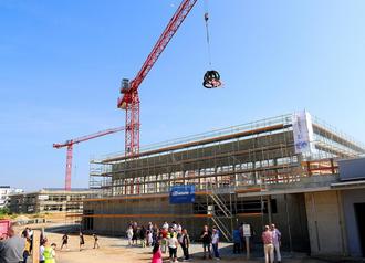 Hartmann dankte den Partnerunternehmen, mit denen die Zusammenarbeit in den vergangenen Monaten stets vertrauensvoll, zuverlässig und reibungslos gewesen sei. Er wünsche sich, dass dies auch bei den Ausbaumaßnahmen so ablaufen werden. Sein besonderer Dank gelte all den Bauleuten und Handwerkern, die das ganze Jahr über auch bei extremer Hitze, bei Regen und bei Kälte an den Gebäuden arbeiteten und ohne die ein solches Bauvorhaben nicht realisiert werden könne. Mit dem Richtfest werde eine schöne Tradition gepflegt, um der Arbeit und dem Handwerk auf einer solchen Baustelle großen Respekt zu zollen.