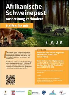 Um die Seuche wirksam zu bekämpfen, ist es wichtig, dass infizierte Wildschweine nicht beunruhigt werden – etwa durch freilaufende Hunde. Andernfalls könnten sie in Bereiche vertrieben werden, in denen bisher noch keine erkrankten Tiere vorhanden sind, und die Seuche immer weiter verschleppt werden. Auch Hunde können zur Verbreitung infizierten Materials beitragen, indem sie es mit ihren Pfoten beim Laufen verteilen. Die Leinenpflicht – die auch in den bebauten Teilen der Gemarkungen gilt – und die Begrenzung der Leinenlänge auf fünf Meter tragen dazu bei, dass Halterinnen und Halter ihren Hund stets in Sichtweite führen und somit eingreifen können, bevor ihr Hund sich einem Wildschwein oder Wildschweinkadaver nähert.