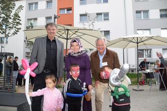 Am Freitag, 16. September, lud die Unternehmensgruppe Nassauische Heimstätte| Wohnstadt (NHW) zu einem Fest, um den Abschluss der Quartiersentwicklung von 160 Bestandswohnungen auf der Mainhöhe zu feiern. NHW-Geschäftsführer Dr. Constantin Westphal, Serviceleiter Tobias Bundschuh und Bürgermeister Manfred Ockel wollten mit diesem Fest nicht nur die gute Zusammenarbeit der Stadt Kelsterbach und der Nassauischen Heimstätte auf der Mainhöhe untermauern. Es sollte auch eine Geste des Dankes an die Menschen sein, die hier wohnen und die aufgrund der Arbeiten zum Teil enorme Unannehmlichkeiten in Kauf nehmen mussten.