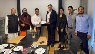 v.l.: Raj Kumar (Chairman KfK Förderverein für Kinder e.V), Sri Swami Adityanath (Ehrengast), Saurabh Bhagat (Eigentümer einer Altenpflegeeinrichtung in Indien), Bürgermeister Manfred Ockel, Stadtverordnete Kriti Kumar, Rahul, Stadtverordneter Rahul Kumar, Kapil Kumar, Unternehmer.