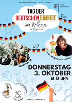 Die Stadt Kelsterbach lädt alle Bürgerinnen und Bürger herzlich zu den Feierlichkeiten anlässlich des Tags der Deutschen Einheit am Donnerstag, 3. Oktober, ein. In der Zeit von 15 Uhr bis 18 Uhr findet auf dem Rathausplatz eine festliche Feier unter dem Motto „Vereint Segel setzen – Gemeinsam Demokratie und Vielfalt stärken“ statt.