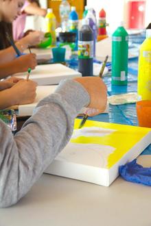 Die Jugendlichen hatten Gelegenheit, kleine Leinwände mit Motiven ihrer eigenen Fantasie zu bemalen