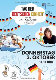 Die Stadt Kelsterbach lädt alle Bürgerinnen und Bürger herzlich zu den Feierlichkeiten anlässlich des Tags der Deutschen Einheit am Donnerstag, 3. Oktober, ein. In der Zeit von 15 bis 18 Uhr findet auf dem Rathausplatz eine festliche Feier unter dem Motto „Vereint Segel setzen – Gemeinsam Demokratie und Vielfalt stärken“ statt. Bürgermeister Manfred Ockel begrüßt die Besucherinnen und Besucher mit einer kurzen Ansprache und lädt zu einem kleinen Sektempfang ein.