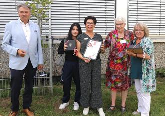 Bürgermeister Manfred Ockel (links) und Agneta Becker (2. von rechts) ehrten Reinhild Kleinlein (rechts) und Astrid Krieger (Mitte) für ihr besonderes Engagement. Mit dabei auch Kimia Safari (2. von links), um die sich Krieger seit vielen Jahren aufopferungsvoll kümmert.
