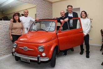 Der Fiat 500, der Namensgeber des „La Cinquecento“, ist auch ein echter Hingucker, finden Bürgermeister Ockel (2.v.r.) sowie Anna, Nicola, Vincenzo und Antonella Ferrara (v.l.).