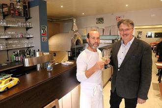 Bürgermeister Ockel (r.) wünscht Nicola Ferrara (l.) viel Erfolg mit dessen Lokal.