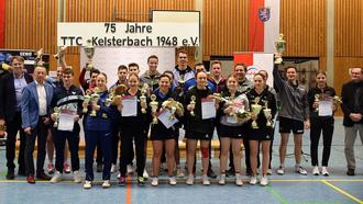 Die Pokale und Siegerurkunden wurden den Sportlerinnen und Sportlern von Bürgermeister Manfred Ockel, Landrat Thomas Will und dem Vorsitzenden des Vereinsrings, Thorsten Schreiner, übergeben. Während Ockel die tolle Organisation lobte, für die sich auch Klaus Riemke in einer kurzen Ansprache bei allen Beteiligten bedankte, zeigte sich Schreiner begeistert, dass hier ein Wochenende lang „Spitzensport bei freiem Eintritt“ geboten wurde. Für die Aktiven des TTC Kelsterbach, die sich ein Jahr lang um die Organisation und den reibungslosen Ablauf der Hessenmeisterschaft gekümmert haben, war dieses Wochenende aber noch viel mehr: Ein starker Auftakt für das Jubiläumsjahr, dem noch eine feierliche Eröffnungsveranstaltung im Bürgerhaus (am Sonntag, 26. März), eine Jubiläumsausstellung im Stadtmuseum, ein Tischtennis-Erlebnistag (am Sonntag, 4. Juni), Turniere und weitere Angebote wie ein Weinstand beim Altstadtfest 2023 folgen werden. (sb)