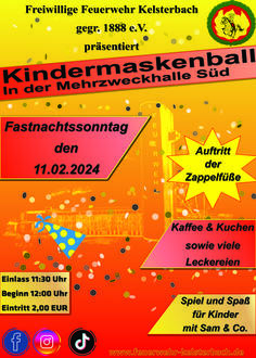 Auch dieses Jahr möchten wir mit euch den Kindermaskenball feiern. Dieser findet nun von 12:00 - 17:00 Uhr statt, dafür jedoch lediglich am Sonntag, den 11.02.2024. (Saalöffnung 11:30 Uhr).