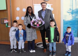Bürgermeister Manfred Ockel wünschte der neuen Leiterin Liberta Appiah-Korang für den Start der Kita SonnenSegler alles Gute.