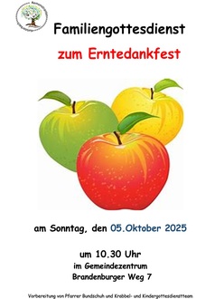 | 10:30 Uhr | Familiengottesdienst zu Erntedank (Pfarrer Bundschuh & Team) |