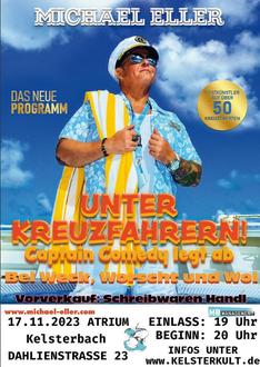 Kelsterkults Kultur-Reihe „BEI WECK, WORSCHT UN WOI“ startet zum Ende des Jahres noch einmal durch. Am Freitag, 17. November, findet im Atrium Kelsterbach die Comedyshow von Michael Eller mit seinem Programm „Ahoi, die Kreuzfahrer kommen“ statt.
