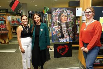 Ausstellungs-Initiatorin Laila Nuri (l.), Dia Sadaat von der Initiative BuildUp! und die Künstlerin Arghawan Rawak freuten sich über die positive Resonanz bei der Ausstellungseröffnung.