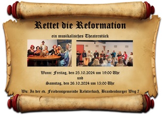 „Rettet die Reformation“ heißt das musikalische Theaterstück, das die Theatergruppe der Friedensgemeinde am 25. und 26. Oktober im Gemeindezentrum im Brandenburger Weg 7 in Kelsterbach aufführt.