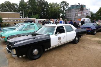 Besonders schön sei, dass hinter jedem Auto eine ganz eigene Geschichte stecke. So etwa bei seinem eigenen Oldtimer, einem Opel Kapitän Baujahr 1969, den Kleiner vor rund 30 Jahren durch Zufall in der Scheune eines Freundes gefunden und für gerade einmal 300 Mark gekauft hatte. Eine spannende Geschichte hatte auch Ingo Benuar zu erzählen, der mit einem amerikanischen Polizeiwagen, Baujahr 1971, vor Ort war. Der Chevrolet, den Benuar gewöhnlich auch in passender Polizeiuniform präsentiert, ist einer der Stars eines Spielfilms, den der Oldtimer-Fan mit einem kleinen Team seit 2021 dreht.