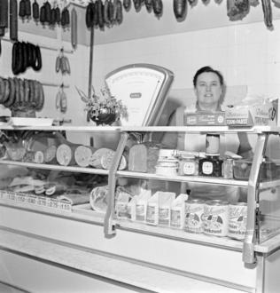 Ein Bild aus dem Jahre 1959 zeigt eine Kelsterbacher Metzgerei, wie es einst viele gab. Die Auslage war zweckmäßig und überschaubar. Die Wurstspezialitäten wurden größtenteils noch selbst hergestellt, oft durch eigene Schlachtung. Dazu ein paar Ergänzungen wie Senf und Würze, fertig war das Angebot. Es handelte sich zur damaligen Zeit ausnahmslos um kleine Familienbetriebe in Kelsterbach. Metzgereiketten waren noch ein Fremdwort und weit weg von der Realität. Generell gab es in den 1950er Jahren noch sehr wenige Supermärkte in Deutschland und man musste für seine Einkäufe diverse Geschäfte aufsuchen, von denen es ebenfalls eine Vielzahl in Kelsterbach gab. (Text/Bilder: Schönstein/Stadtarchiv)