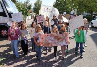 Für gewöhnlich findet die Demonstration im Rahmen des Internationalen Mädchentags am 11. Oktober statt. In diesem Jahr wurde der Termin allerdings vorgezogen, um nicht mit den Herbstferien zu kollidieren. Trotzdem kamen am Treffpunkt vor der Stadt- und Schulbibliothek deutlich weniger Mädchen zusammen als in den Vorjahren. Konnten zuletzt rund 100 bis 120 Teilnehmerinnen gezählt werden, waren es dieses Mal nur etwa 35 Mädchen, um für Gerechtigkeit, Vielfalt und Empowerment auf die Straße zu gehen. Neben der Jugendförderung begleiteten unter anderem die Schulkindbetreuung der Caritas sowie Vertreterinnen der Schulsozialarbeit den Demonstrationszug.