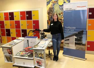 Pia Hohenleitner stellte die Ausbildung in der Stadt- und Schulbibliothek vor.