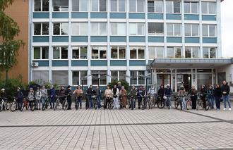 Die Schülerinnen und Schüler der Klasse 7.1 der IGS machten auf ihrer Nachhaltigkeits-Radtour auch am Rathaus Halt.