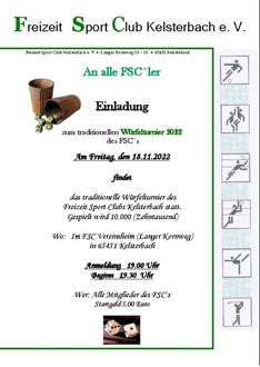 Am Sonntag, 18. November findet das nun bereits zweimal ausgefallene Würfelturnier des FSC statt. Der Verein, der nunmehr über 1000 Mitglieder zählt, lädt seiner Mitglieder zu diesem traditionsträchtigen Termin herzlich ein.