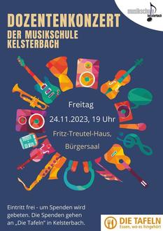 Am Freitag, 24. November, findet um 19 Uhr im Hessensaal im Fritz-Treutel-Haus ein Konzert der Dozentinnen und Dozenten der Musikschule Kelsterbach statt. Die Musikerinnen und Musiker präsentieren ein abwechslungsreiches Programm von Klassik über Jazz bis hin zu französischen Chansons und Pop-Gesang.