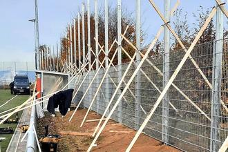 Am Rande des Kelsterbacher Sportparks wird derzeit ein neuer Ballfangzaun installiert. Er ist deutlich höher als die bestehende Vorrichtung und soll verhindern, dass Bälle ins angrenzende Gelände geschossen werden, wo sie auf die Baustelle für die Regionaltangente West oder gar auf die Bundesstraße gelangen könnten. Die Kosten für den Zaun trägt die RTW Planungsgesellschaft. (wö)