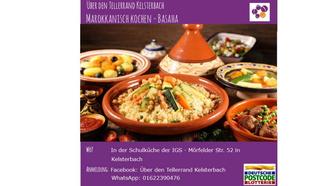 Über den Tellerrand Kelsterbach kocht zusammen mit den Frauen vom Marokkanischen Kulturverein Kelsterbach am Dienstag, dem 28. November 2023 von 17:00 bis 21:00 Uhr in der Schulküche der Gesamtschule in Kelsterbach in der Mörfelder Straße 52. Es gibt noch freie Plätze. Wer Lust hat mitzumachen, kann sich anmelden über kelsterbach@ueberdentellerrand.org oder über Facebook https://www.facebook.com/Ueberdentellerrandkelsterbach