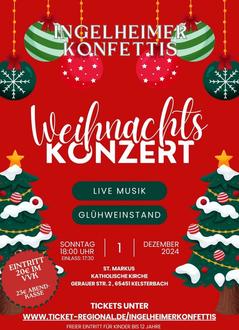 Nach dem letzten großen Erfolg der Ingelheimer Konfettis mit ihrem stimmungsvollen Weihnachtskonzert in Kelsterbach dürfen sich die Besucherinnen und Besucher - nach 5jähriger Pause - in diesem Jahr wieder auf dieses vielversprechende Highlight freuen.
