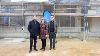 Bürgermeister Manfred Ockel, Marion Fontaine Kretschmer, Geschäftsführerin der NHW, und Bauunternehmer Peter Groß vor dem Neubau.
