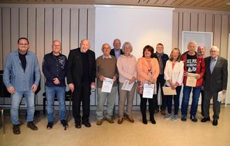 Ein besonderer Punkt auf der Tagesordnung war die Ehrung langjähriger Mitgliedschaften. Diese seien längst keine Selbstverständlichkeit mehr, so Blaum. Umso schöner sei es, dass es Menschen gibt, die traditionellen Kulturvereinen auch in schlechten Zeiten die Treue halten. Zusammen mit dem Zweiten Vorsitzenden Christian Schönstein und dem Vereinsringvorsitzenden übergab Blaum Urkunden und Ehrennadeln für Mitgliedschaften von zehn, 15 und 20 Jahren. Für zehn Jahre Mitgliedschaft geehrt wurden Anita Kilbert, Manuel Lauss, Erik Michalski, Eva Michalski, Eleonore Wagner, Klaus Dürr, Lars Laun, Annemarie Lohr, Rolf Lohr, Roswitha Rosebrock, Renate Scherwa, Hella Schneider, Iwona Stawinoga und Kerstin Wassermann. Eine Ehrung für 15 Jahre beim Volksbildungswerk bekamen neben Bürgermeister Manfred Ockel und seiner Frau Gabriele auch Eberhard Groschel, Ingelore Garder-Schütte, Petra Noll und Eike Schütte. Für 20 Jahre Mitgliedschaft geehrt wurden Ingrid Dietrich, Günter Kaiser, Karola Reith und Kurt Späth. Eine besondere Ehrung überreichten Blaum, Schönstein und Schreiner an Otto Pfister, der in diesem Jahr auf stolze 60 Jahre als Mitglied beim Volksbildungswerk zurückblicken kann.