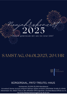 Am Samstag, 4. Januar, findet um 20 Uhr im Bürgersaal des Fritz-Treutel-Hauses das traditionelle Neujahrskonzert statt. Liebhaber klassischer Musik können sich von einem unvergesslichen Abend voller festlicher Stimmung verzaubern lassen.