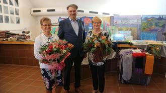 Bereits seit 38 Jahren existiert der Verein der Hobbykünstler. Ursprünglich ging es hauptsächlich um Malerei, doch es kamen schnell immer mehr kunsthandwerkliche Richtungen hinzu. Der Verein wuchs und veranstaltete beinah jedes Jahr eine Ausstellung mit eigenen Mitgliedern sowie Gastausstellern. Unter anderem durch Corona wurde diese Tradition jäh unterbrochen. In diesem Jahr gab es nun wieder eine große Ausstellung und zum Neustart wurde auch das Konzept angepasst. Mit „Kunst und Genuss“ wurde die kunsthandwerkliche Messe mit der Gemütlichkeit eines Cafés kombiniert, das in der oberen Etage des Fritz-Treutel-Hauses eingerichtet wurde. Margot Herth, erste Vorsitzende des Vereins, ist glücklich, dass die Ausstellung wiederbelebt und so gut angenommen wurde. Gemeinsam mit Bürgermeister Manfred Ockel eröffnete sie die Verkaufsmesse und begrüßte zahlreiche Ehrengäste, darunter Stadtverordnetenvorsteher Frank Wiegand, der wie Ockel mit seiner Ehepartnerin gekommen war. Herth bedankte sich ebenfalls bei ihren Mitstreiterinnen aus dem Vorstand Silvia Lichtwaldt, Ariane Schuster und Marion Ahnsehl.