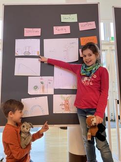 Jasmin (neun Jahre) und Sinan (sieben Jahre) haben eigene Enwtürfe gemalt und hoffen natürlich auf deren Umsetzung.