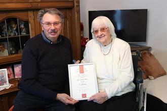 Bürgermeister Manfred Ockel (l) gratulierte Emilie Bauer am Montag zum 95. Geburtstag.