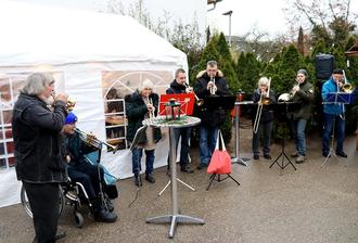 Unter den Klängen des Posaunenchors wurde der kleine Weihnachtsmarkt offiziell eröffnet.