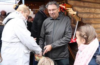 Nachdem so die passende Stimmung aufgebaut wurde, ging es für die Besucher in den Hof der Kita St. Martin, wo der Markt mit weihnachtlichen Klängen des Posaunenchors offiziell eröffnet wurde. Nach einer kurzen Begrüßung durch Pfarrer Nico Kopf und Bürgermeister Manfred Ockel, der die schöne Stimmung auf diesem „handgemachten und ehrenamtlich von den fusionierten Gemeinden gemeinsam gestemmten Weihnachtsmarkt“ lobte, wurde geselliges Beisammensein bei Kuchen im Haus Feste Burg, Stockbrot am Lagerfeuer, Glühwein, Bratwurst oder bei von den Konfirmanden gebackenen Waffeln genossen. Auch der Nikolaus ließ es sich nicht nehmen, persönlich vorbeizuschauen und kleine süße Gaben an die anwesenden Kinder zu verteilen.
