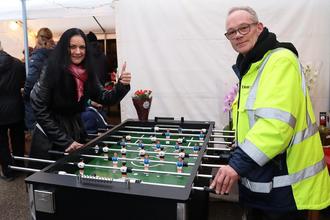 Großer Beliebtheit erfreute sich auch in diesem Jahr wieder die von Christa Xenidis und ihrer Familie organisierte Tombola. An beiden Tagen waren die Lose, bei deren Verkauf der Bürgermeister am Samstag tatkräftige Unterstützung leistete, in Windeseile vergriffen. 500 attraktive Preise, die lokale Firmen und Privatpersonen zur Verfügung gestellt hatten, wurden an dem Wochenende verlost. Besonders freuen durfte sich Thomas-Stefan Lindemann von der Firma TankE GmbH, der den wohl größten Preis – einen Tischkicker – für seine Belegschaft ergattern konnte. Insgesamt rund 2500 Euro konnten durch den Losverkauf und zusätzliche Spenden für das Hospiz Lebensbrücke in Flörsheim gesammelt werden.