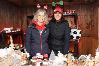 Anja Wolf (links) und Gabi Peschel verkauften Plätzchen, Marmeladen und anderes Selbstgemachtes.