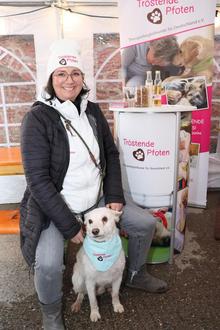 Die Einnahmen des Verzehrs gehen in diesem Jahr an den Verein "Tröstende Pfoten", den Daniela Wiegand gemeinsam mit Therapiebegleithund Loki vorstellte.