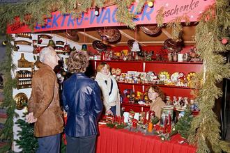 Damals wie heute erfreuen sich Weihnachtsmärkte großer Beliebtheit. So auch im Jahr 1979, als auf dem Kelsterbach Marktplatz ein solcher abgehalten wurde. Die ersten Weihnachtsmärkte dieser Art wurden seinerzeit noch vom Gewerbeverein organisiert, ehe es die Stadt Kelsterbach übernahm. Zeitweilig war der Weihnachtmarkt in späteren Jahren auch in der Mörfelder Straße anzutreffen. Heutzutage findet der „Budenzauber“ im Schlosshof statt, organisiert von den Alt-Kerweborsch.
