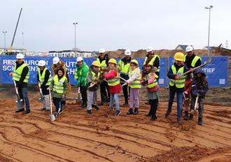 Hartmann schloss seine Ansprache mit einem Zitat von Albert Einstein: „Es ist nicht genug zu wissen, wie man es tut. Man muss auch wissen, warum man es tut.“ Im Fall des KTS-Neubaus seien das „Warum“ ganz klar die Kinder, für die der Neubau einen positiven Beitrag leisten solle. Einige von ihnen waren auch beim Spatenstich mit dabei. Denn alle Schülerinnen und Schüler der KTS waren dazu aufgerufen, ein Bild zu malen, wie sie sich ihre neue Schule vorstellen oder welche Ideen sie für den Neubau haben. Die Bilder wurden anschließend in der Aula ausgestellt und von den Kindern bewertet. Die Werke mit den meisten Punkten wurden dann auf Planen gedruckt und zieren ab sofort den Bauzaun. Die stolzen Künstlerinnen und Künstler der Klassen eins bis vier durften ihre Bilder vorstellen und an der Spatenstich-Zeremonie teilnehmen. Ob die Schule so aussehen wird, wie es sich die Kinder vorstellen, wird sich in rund zwei Jahren zeigen. (sb)