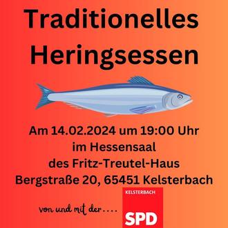 Der SPD-Ortsverein Kelsterbach läd herzlich zum traditionellen Heringsessen am Aschermittwoch ein.