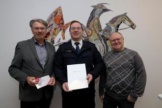 (v.l.) Bürgermeister Manfred Ockel, Stadtbrandinspektor Christian Rolle und Personalrat-Vertreter Rüdiger Werdt
