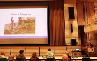 Die Besucherinnen und Besucher konnten im Anschluss noch mit den verschiedenen Akteuren des Abends ins Gespräch kommen, sich an Infotafeln und einem Tisch mit Fachliteratur und Broschüren weitere Tipps holen. Passend dazu war auf der letzten Folie der Präsentation zu lesen: „Viel Erfolg beim Gärtnern“. (sb)