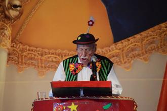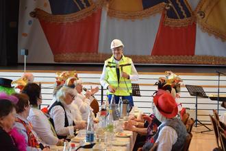 Zum Abschluss trat mit Werner Georg noch ein echtes Feuerreiter-Urgestein an das Mikrofon. In seiner Büttenrede nahm er sein Publikum mit auf eine ausgedehnte Shopping-Tour. Zunächst hob er dabei die Attraktivität der Einkaufsmöglichkeiten in der Stadt hervor: „Ja, Kelsterbach, die Stadt von Welt, ist kundenfreundlich eingestellt. Nur Rüsselsheim kannst du indesse, einkaufsmäßig glatt vergesse!“ Danach ging es dem Online-Versandhändlern an den Kragen, bevor Georg sein Leid darüber klagte, dass er sich beim Einkaufen im Supermarkt immer an die Kasse stellen würde, an der es am längsten dauert. Eine Schilderung, die viele der Anwesenden sehr gut nachvollziehen konnten und daher auch mit besonders herzhaftem Lachen quittierten.