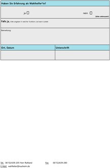 Für die Durchführung dieser Wahl werden in den Wahlvorständen ca. 60 Wahlhelfer*innen benötigt.
