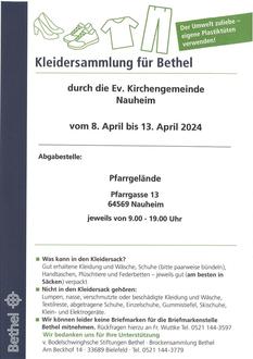 | 09.00 Uhr | Beginn der Kleidersammlung für Bethel |