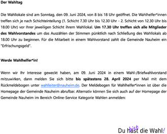Aufruf Wahlhelfer Europawahl am 09. Juni 2024