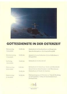 | 05:30 Uhr | Gottesdienst am Ostermorgen mit Taufen und Abendmahl (Pfarrerin Stefanie Bischof) |